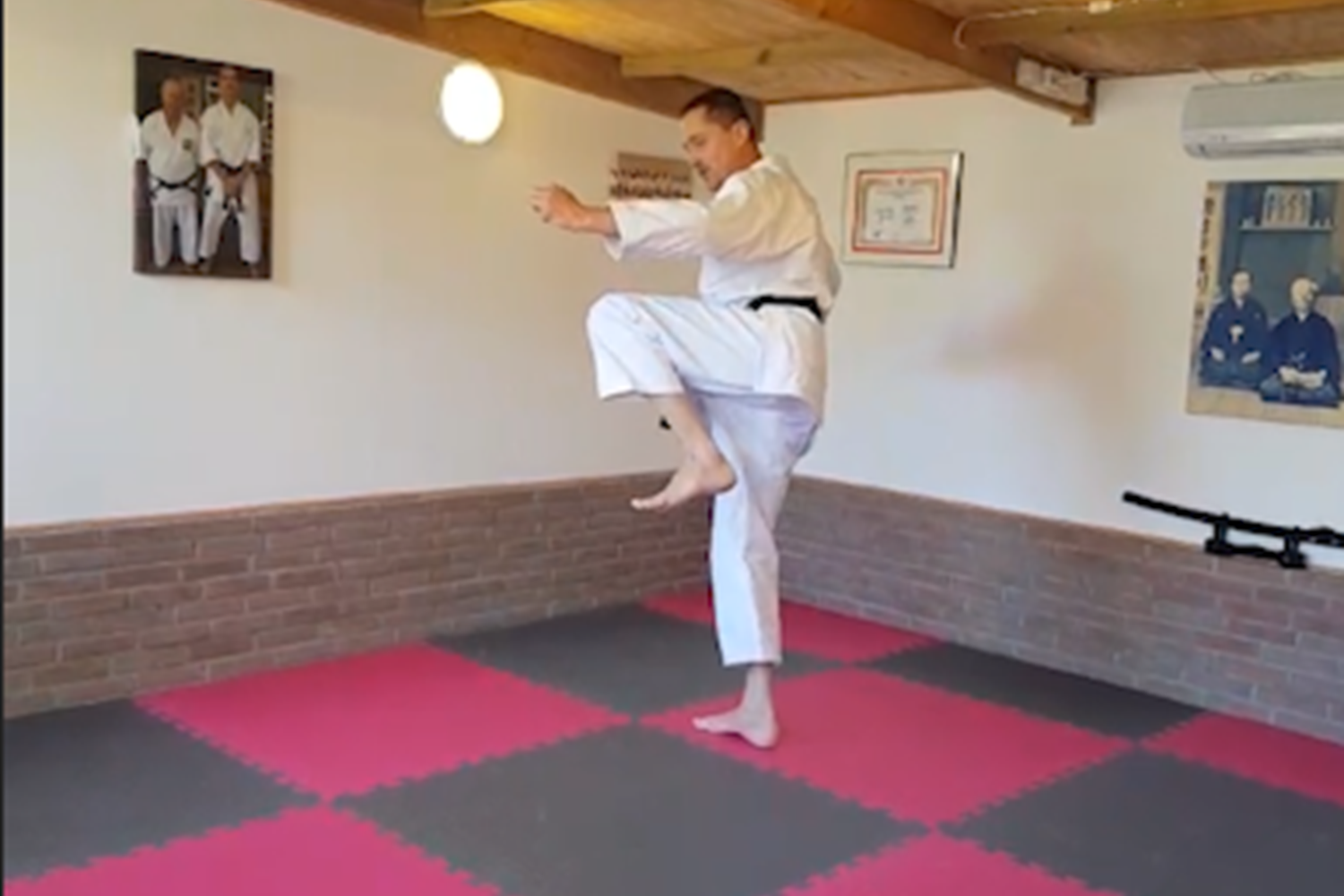 Schoppen. Hoe doen we mae geri; mawashi geri en yoko geri ook alweer precies.
